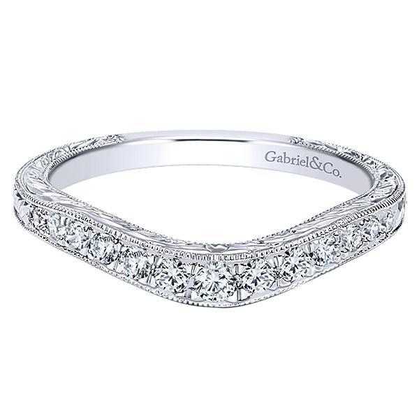 SAMPLE Vintage 14KW D=0.20cttw Hand Engraved Curved Micro Pavé Band