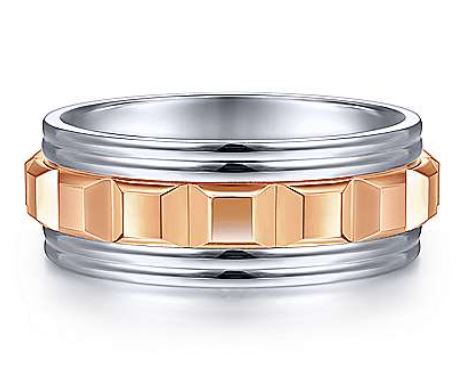 SAMPLE 14K White/Rose Gold Ridges Diamond Cut Channel Rounded Edge Mens Wedding Ring