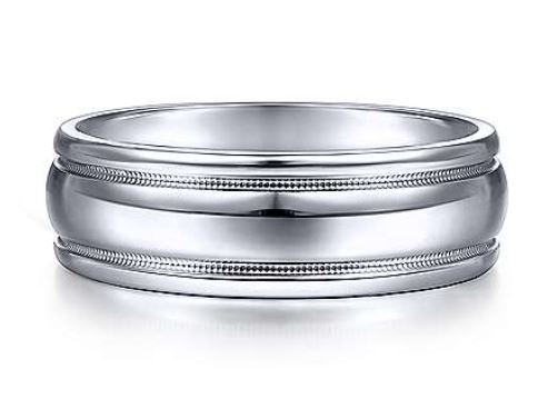 SAMPLE 14K White Gold Raised Center Milgrain Edge Mens Wedding Ring