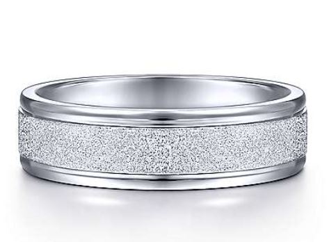 SAMPLE 14K White Gold sandblast Polished Edge Mens Wedding Ring