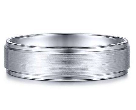 SAMPLE 14K White Gold Satin Polished Beveled Edge Mens Wedding Ring