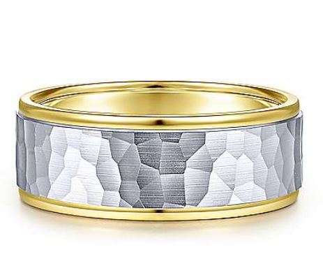 SAMPLE 14K Yellow/White Gold Hammered Polished Edge Mens Wedding Ring