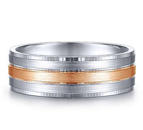 SAMPLE 14K White/Rose Gold Satin Center Channel Mens Wedding Ring