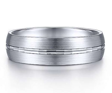 SAMPLE 14K White Gold Satin Engraved Channel Mens Wedding Ring