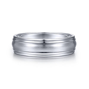 SAMPLE 14K White Gold Raised Center Diamond Cut Channel Men's Wedding Ring