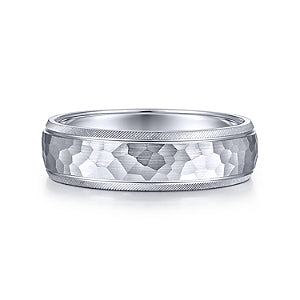 SAMPLE 14K White Gold Hammered Diamond Cut Edge Men's Wedding Ring