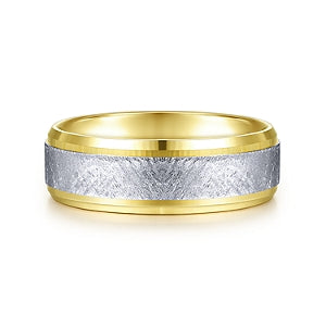 SAMPLE 14K Yellow/White Gold Diamond Brushed Beveled Edge Mens Wedding Ring