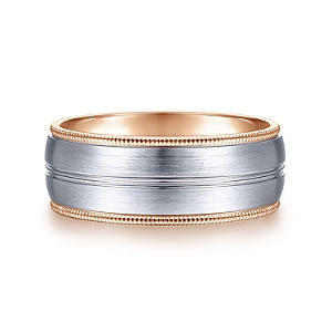 SAMPLE 14K White/Rose Gold Satin Channel Rope Edge Mens Wedding Ring