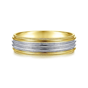SAMPLE 14K Yellow/White Gold Polished Milgrain Channel Mens Wedding Ring