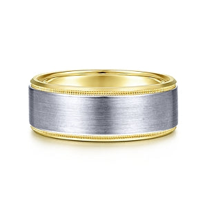 SAMPLE 14K Yellow/White Gold Satin Beveled Edge Mens Wedding Ring