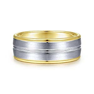 SAMPLE 14K Yellow/White Gold Satin Channel Mens Wedding Ring