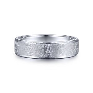 SAMPLE 14K White Gold Brushed Beveled Edge Mens Wedding Ring