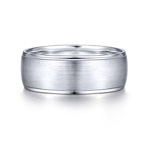 SAMPLE 14K White Gold Satin Polished Edge Mens Wedding Ring