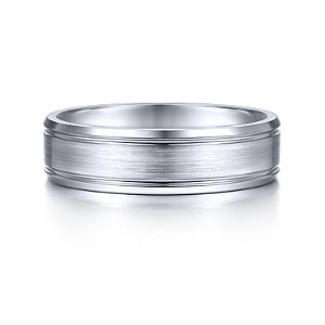 SAMPLE 14K White Gold Satin Channel Polished Edge Mens Wedding Ring