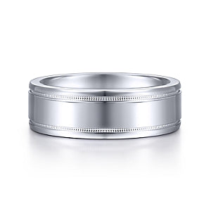 SAMPLE 14K White Gold Satin Milgrain Channel Mens Wedding Ring