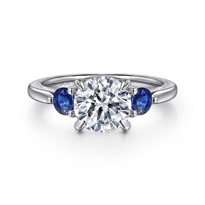 SAMPLE D=0.11cttw 14K WG 3 STONE DIAMOND+SAPPHIRE ENG RING MOUNT