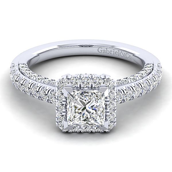 SAMPLE D=0.87cttw14k White Gold Princess Cut Halo Diamond