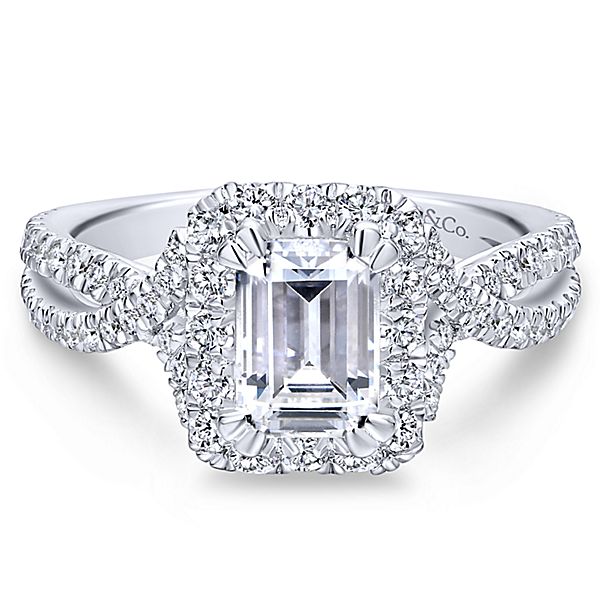 SAMPLE D=0.73cttw 14k White Gold Emerald Cut Halo Diamond
