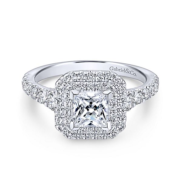 SAMPLE D=0.90cttw 14k White Gold Princess Cut Double Halo Diamond