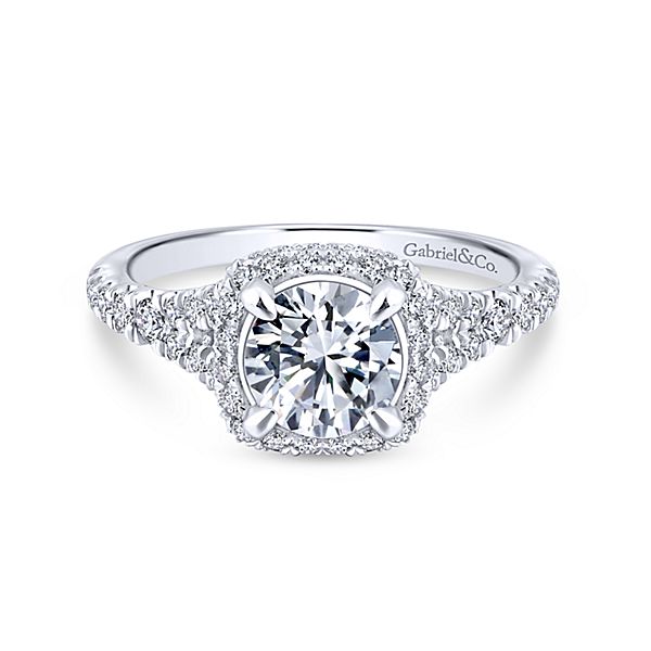SAMPLE D=0.79cttw 14k White Gold Round Double Halo Diamond