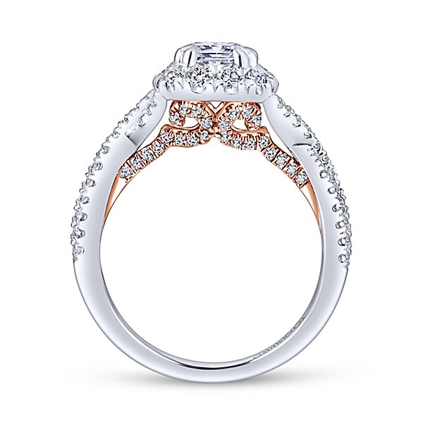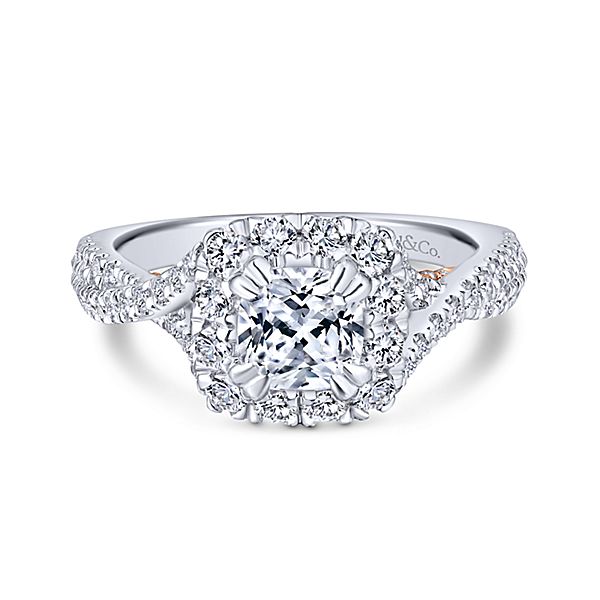 SAMPLE D=0.83cttw 14k White/Rose Gold Cushion Cut Halo Diamond