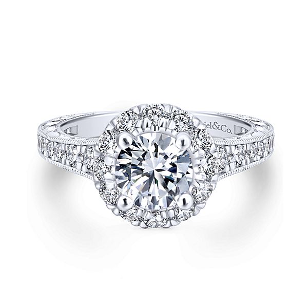 SAMPLE D=1.03cttw 14k White/Rose Gold Round Halo Diamond