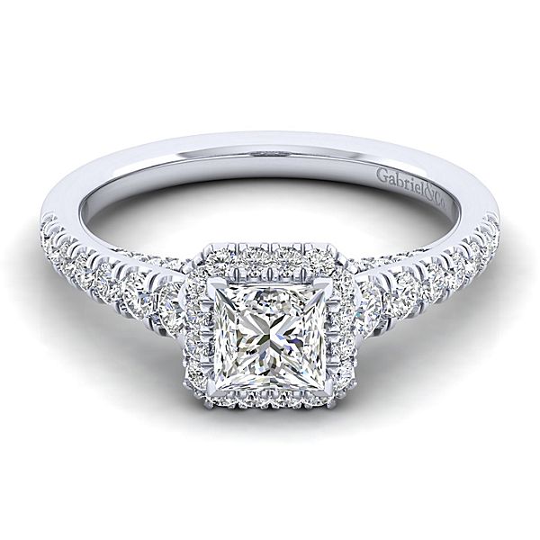 SAMPLE D=0.68cttw 14k White Gold Princess Cut Halo Diamond