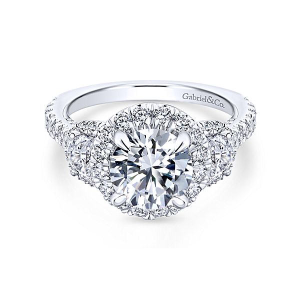 SAMPLE D=1.56cttw 14k White Gold Round 3 Stones Halo Diamond