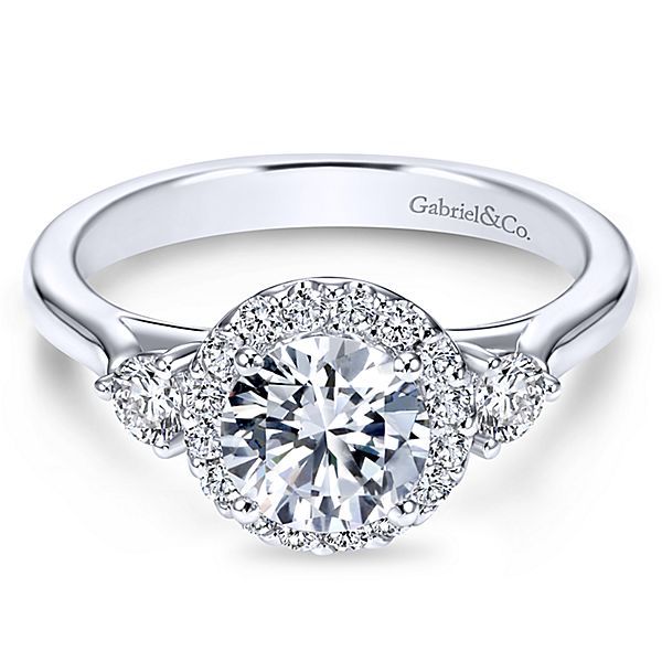 SAMPLE D=0.42cttw 14k White Gold Round 3 Stones Halo Diamond