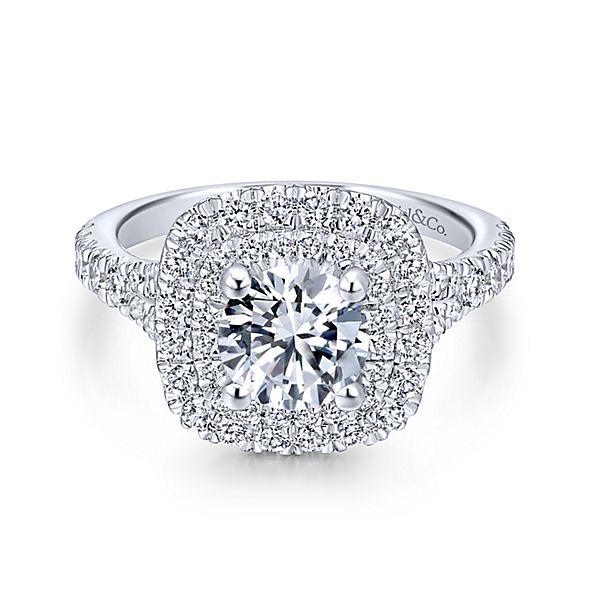 SAMPLE D=1.07cttw 14k White Gold Round Double Halo Diamond