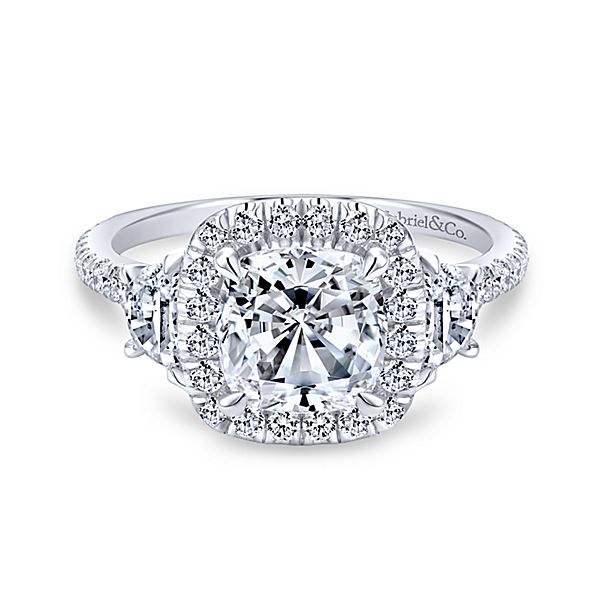 SAMPLE D=0.91cttw 14k White Gold Cushion Cut 3 Stones Halo Diamond
