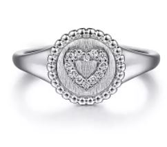 SS Signet Ring w Diamond Heart Serial No S1531432