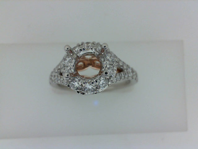 14k White/Rose Gold Round Halo Diamond D=0.97cttw SIZE 7.5
