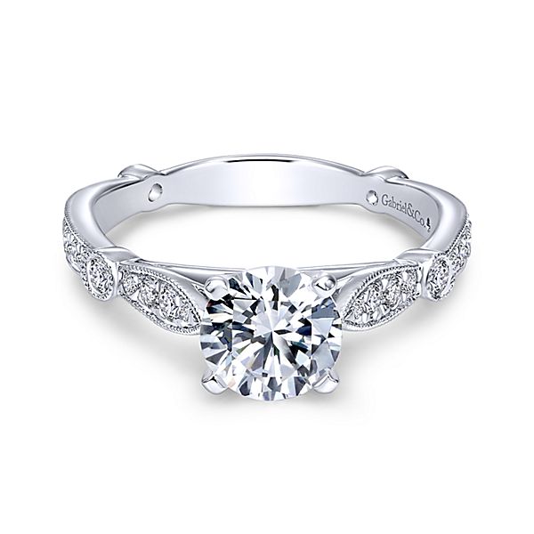 SAMPLE D=0.38cttw Vintage 14k White Gold Round Straight Diamond