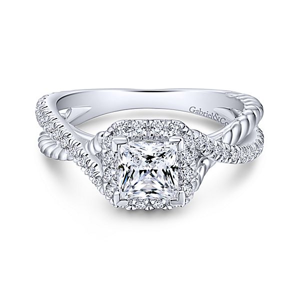 SAMPLE D=0.45cttw 14k White Gold Princess Cut Halo Diamond