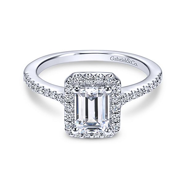 SAMPLE D=0.28cttw 14k White Gold Emerald Cut Halo Diamond