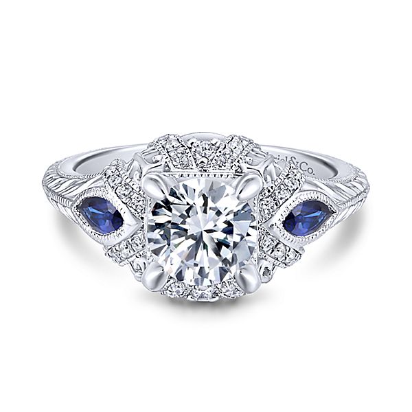 SAMPLE D=0.15cttw Vintage 14k White Gold Round 3 Stones Halo Diamond A Quality Sapphire