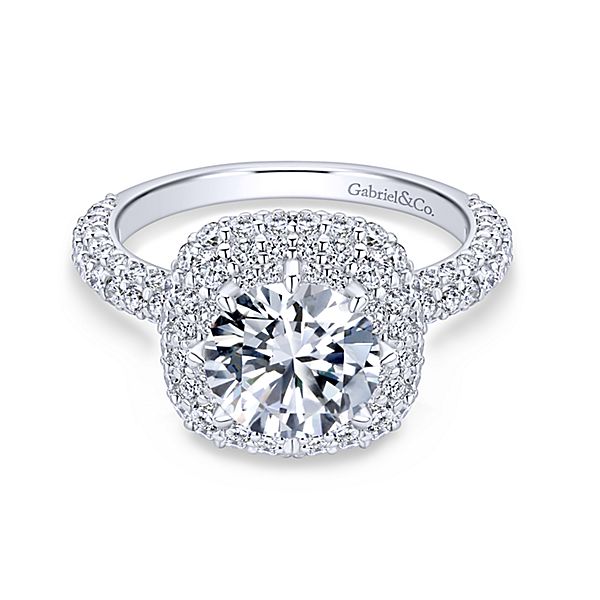 SAMPLE D=1.76cttw 14k White Gold Round Double Halo Diamond