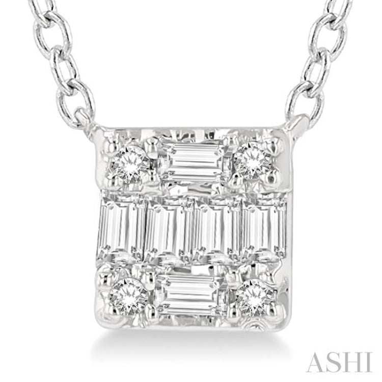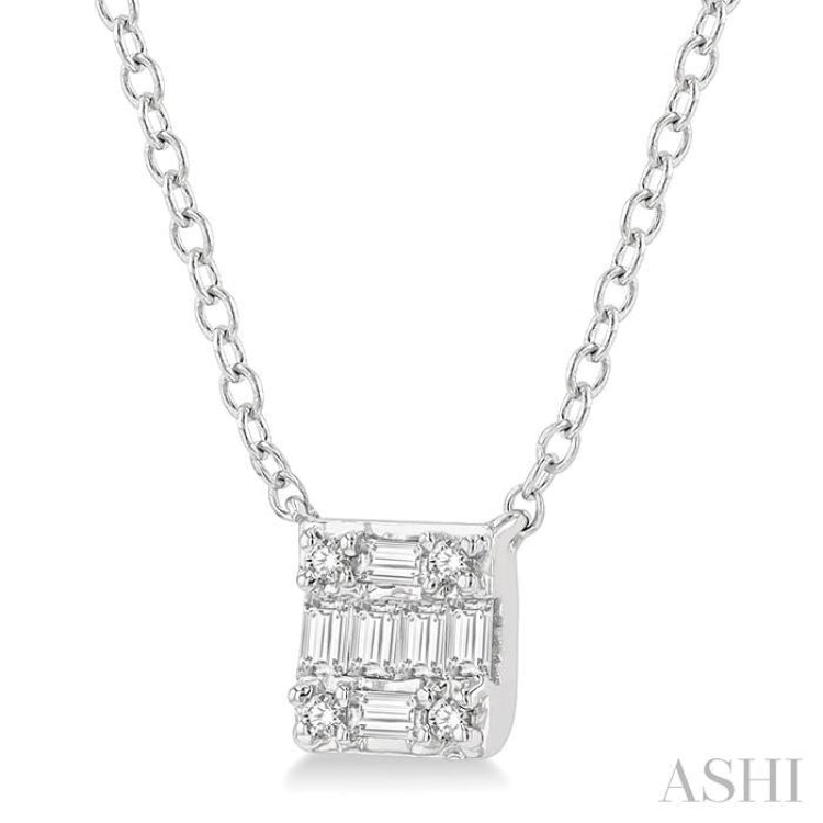 1/8 Ctw Square Shape Baguette and Round Cut Diamond Petite Fashion Pendant With Chain in 14KWhite Gold