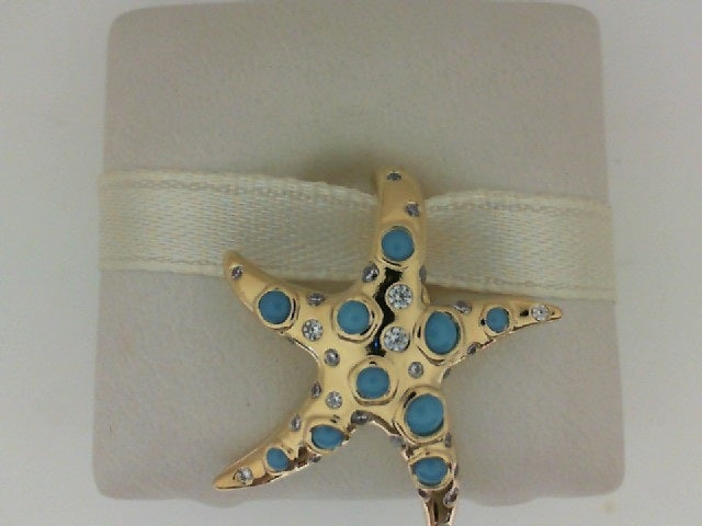 Starfish 14k gold-plated dangle with clear cubic zirconia and capri blue crystal