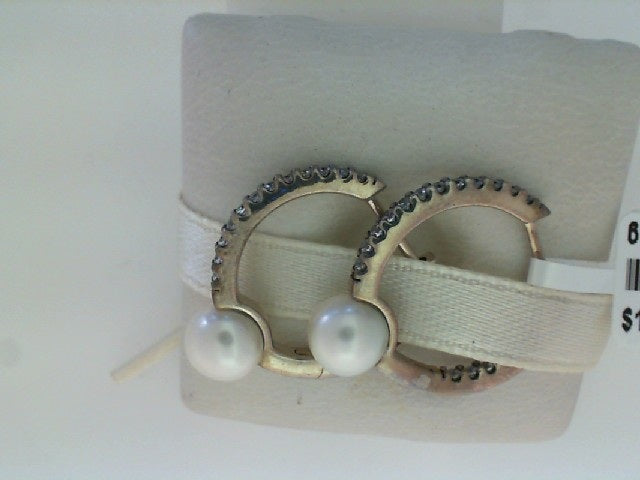 Treated Freshwater Cultured Pearl & Pave Hoop Earrings