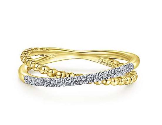 14KY D=0.09cttw Bujukan Beaded Pave Diamond Criss Cross Ring