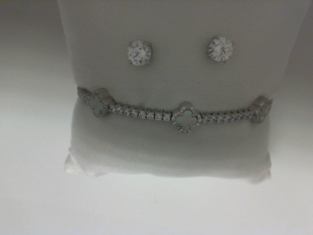 Holiday Set Featuring One SS w/Plat Freshwater Mother Of Pearl Tennis Bracelet and one set of SS CZ 1.50cttw Round Studs