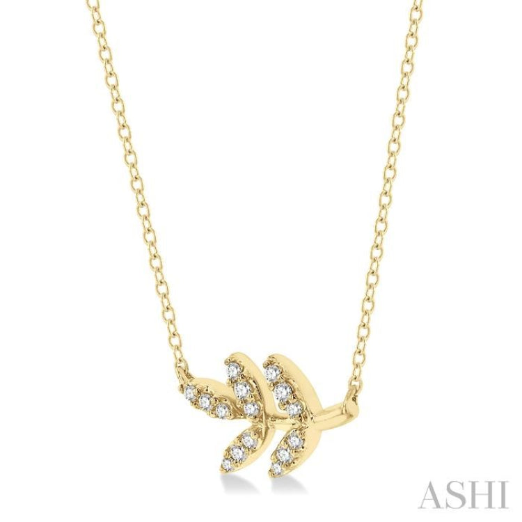 1/10 Ctw Leaf Motif Round Cut Diamond Petite Fashion Pendant With Chain in 10K Yellow Gold