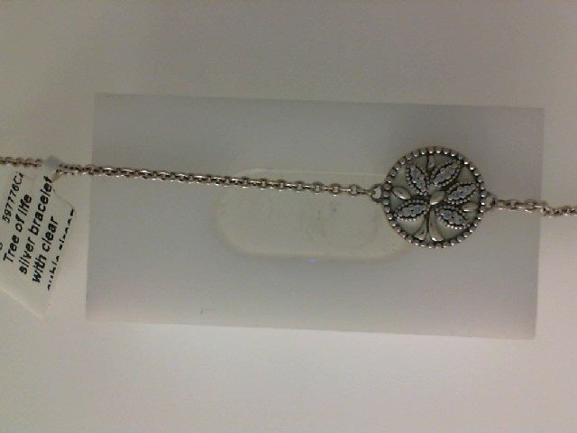 Tree of life silver bracelet with clear cubic zirconia and white enamel