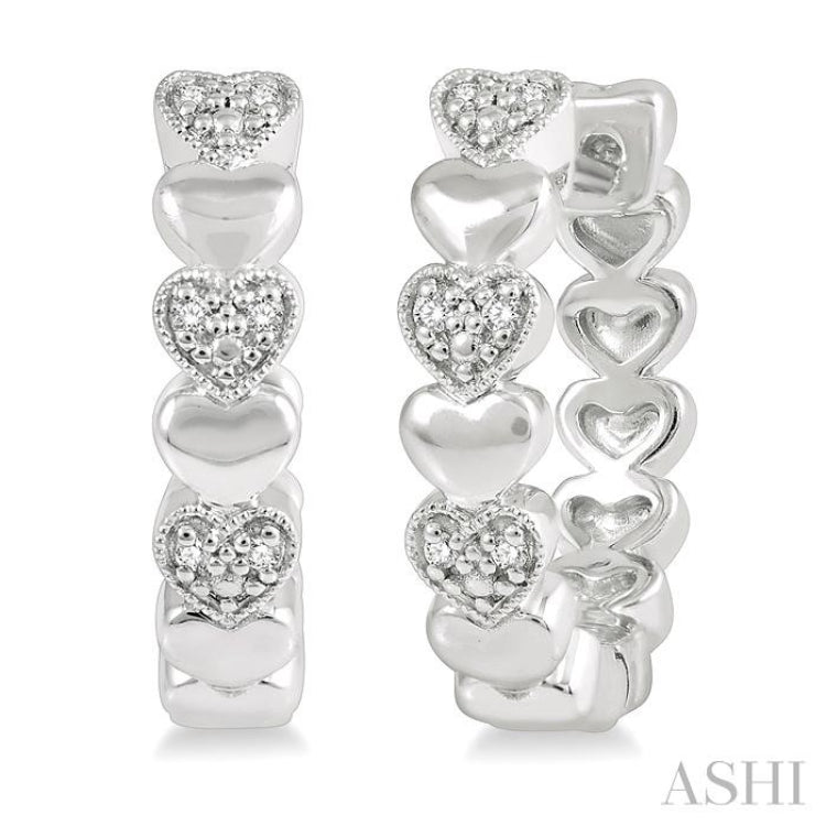 1/20 Ctw Mini Hearts Round Cut Diamond Hoop Earring in Sterling Silver