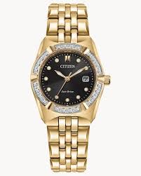 CItizen's Ladie's ECO Wr100 Watch Black Face and Gold Band